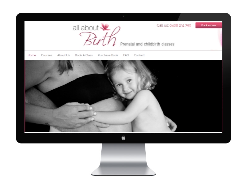 All About Birth is a company providing prenatal education services. The owner, Louise is a mother, midwife and childbirth educator. She provides prenatal childbirth education courses for expectant couples. Giving birth for the first time means moving into a world of the unknown which has a lot of potential for anxiety for first timers. That's why the website needed to communicate professionalism and calm. All about Birth actually teaches a course called Calmbirth (c) too. Our client also sells a book she wrote about inspiring stories which she now sells online and takes bookings online.