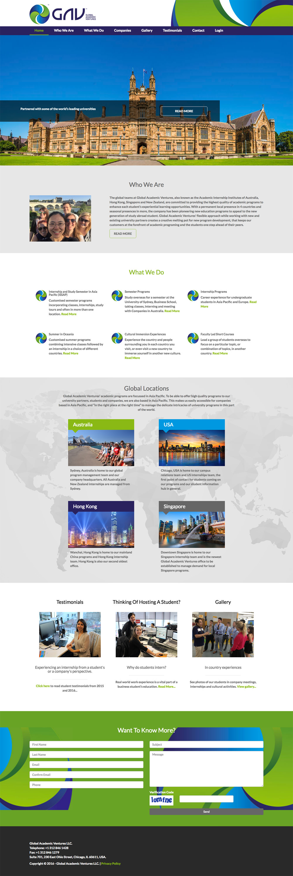 A new website design with a simple layout and user friendly features was required to showcase Global Academic Ventures.