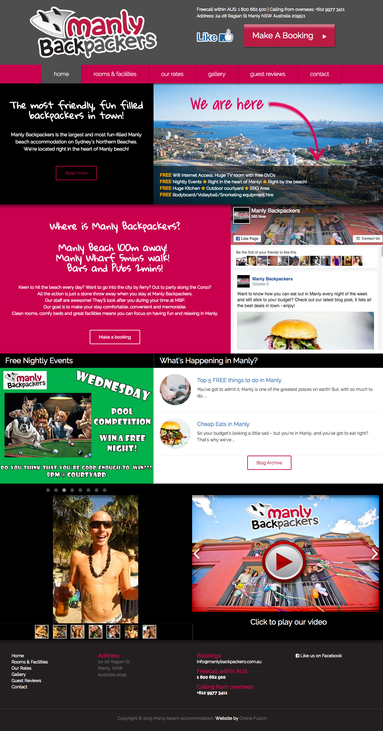 Manly Backpackers provide accommodation to tourists visiting Manly. They're next to the beach with a large hostel so they service a lot of visitors each year. First impressions count when attracting tourists to stay at your accommodation. An online presence is the main drive for a potential backpacker to decide on where to stay. They’re looking for a fun action packed place with lots of people and activities. That’s why the website design is so important here.